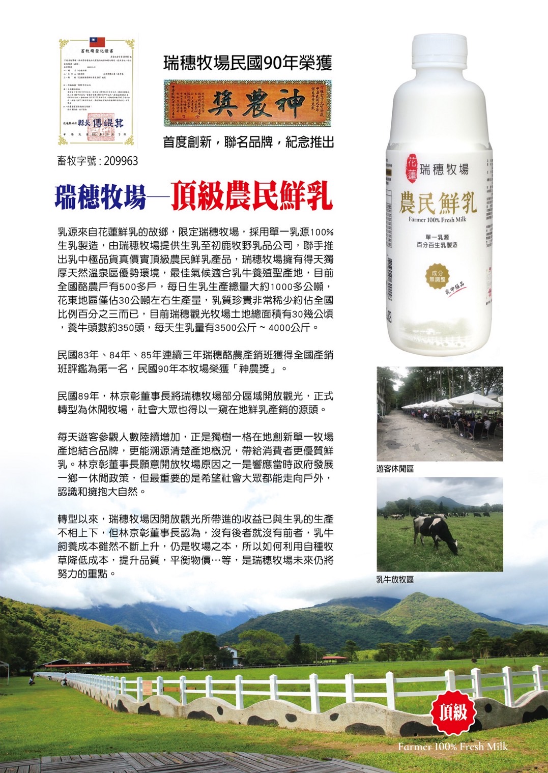 花蓮單一乳源 瑞泉牧場100%鮮乳